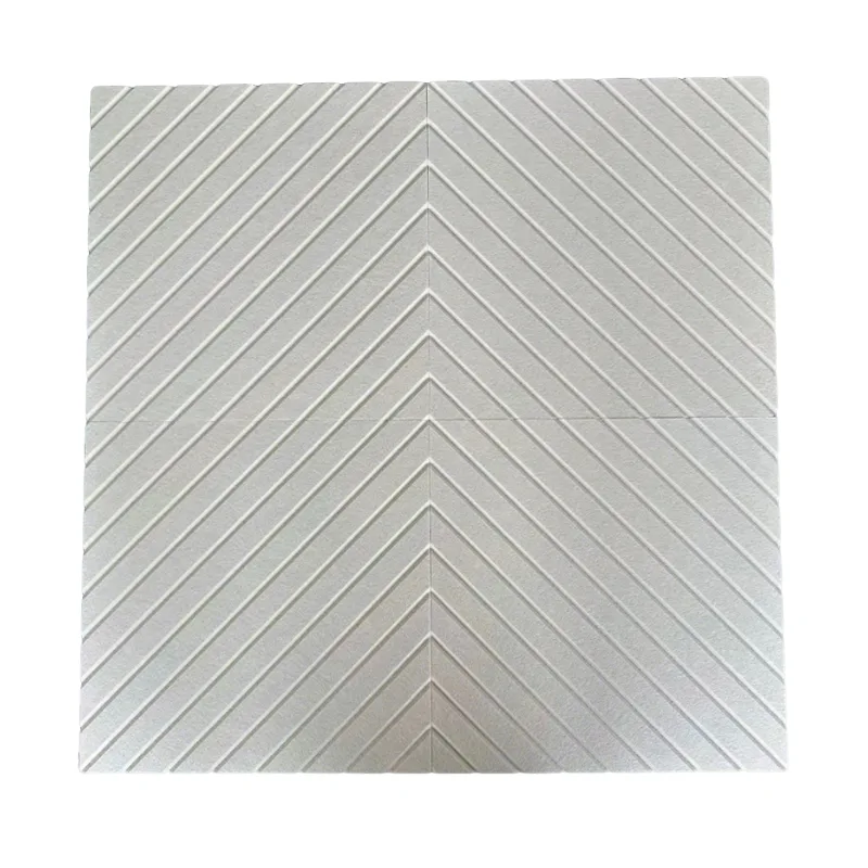 Nuestro panel acústico de fieltro PET con canal en V beige utiliza fibra de poliéster PET, el mismo material que las fibras de la ropa, como material base. La superficie está grabada con una delicada textura de ranura en V, que es suave y agradable al tacto. El interior está lleno de finos poros: cuando el sonido llega, se absorbe sin reflejos ni ecos, solucionando los problemas de ruido. ¡El color beige también complementa varios estilos de decoración, asegurando reducción de ruido y atractivo estético!