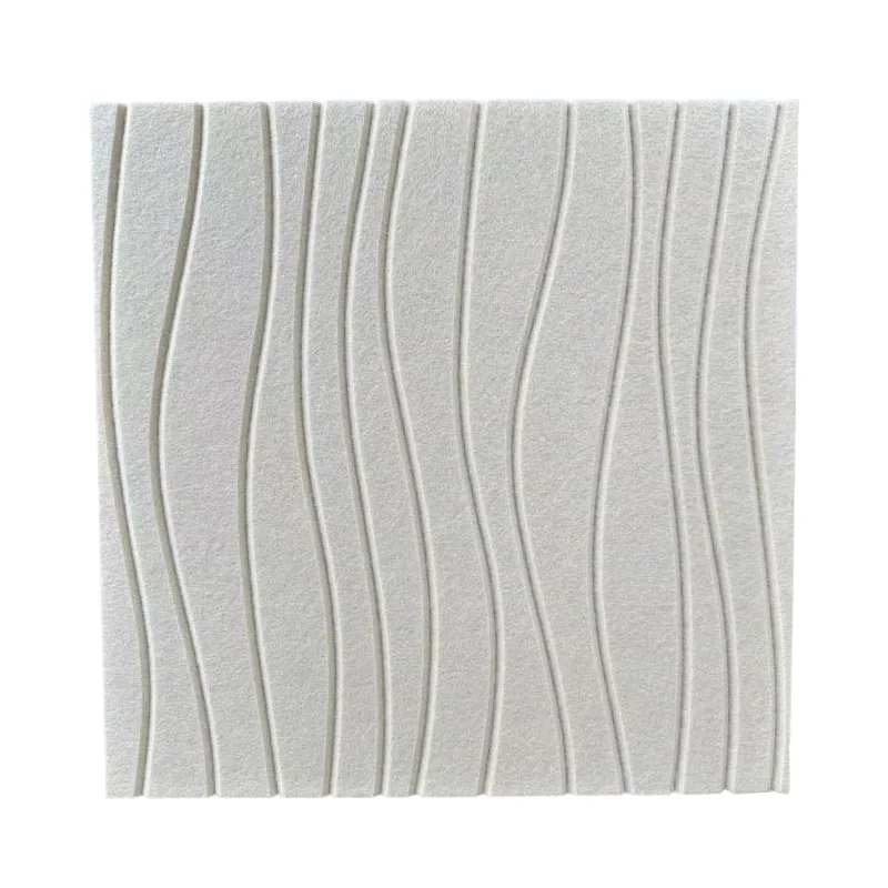 Nuestros paneles acústicos de fieltro PET Beige Water Wave utilizan tecnología avanzada de unión térmica y punzonado con aguja para garantizar una durabilidad y un rendimiento acústico superiores. Cada lote de productos se somete a rigurosas pruebas de calidad para garantizar la coherencia y los altos estándares.