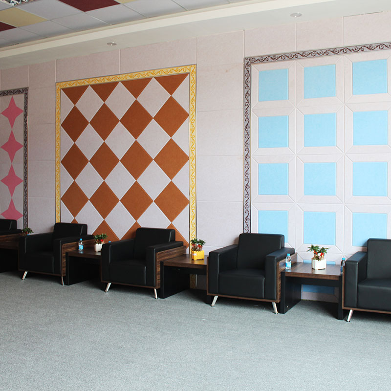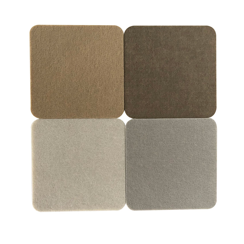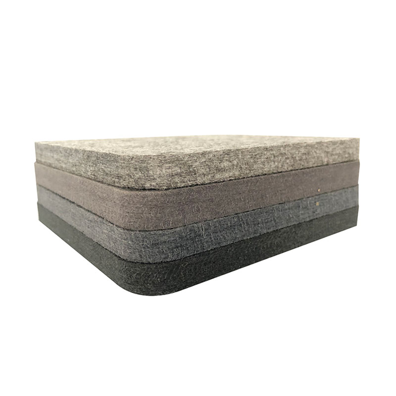Los paneles acústicos de fieltro PET están hechos de 100 % poliéster mediante un proceso de punzonado con aguja. El proceso de producción es completamente físico y ecológico, sin aguas residuales, emisiones, residuos. sin adhesivo, la naturaleza porosa del panel acústico lo hace absorbente de sonido y aislante térmico con características de no tóxico, no alergénico, no irritante y no contiene aglutinantes de formaldehído y tiene un alto NRC: 0.85